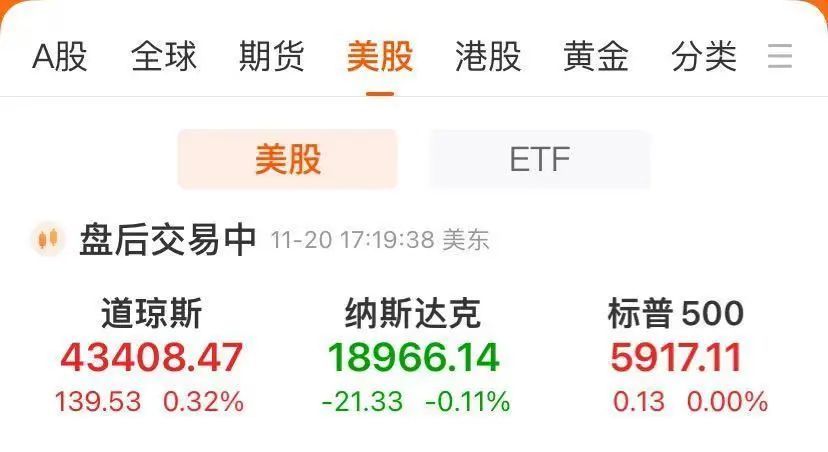 截至收盘,道琼斯指数涨0.32%,报43,408.47点;标普500指数平收,报5,917.11点;纳斯达克指数跌0.11%,报18966.14点。